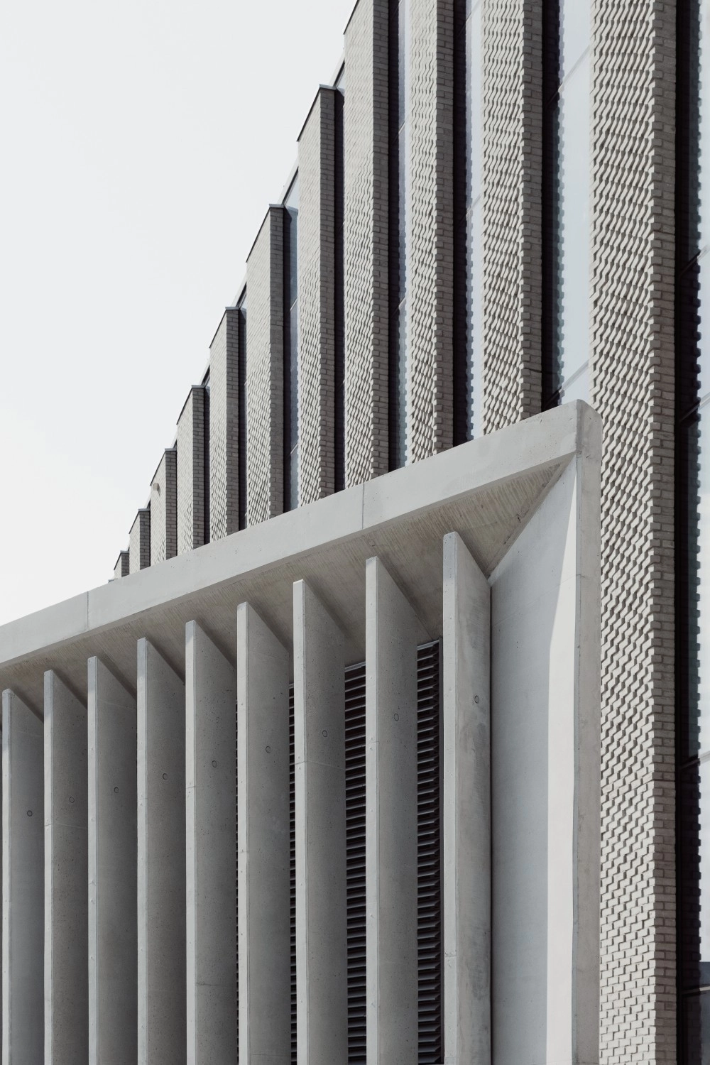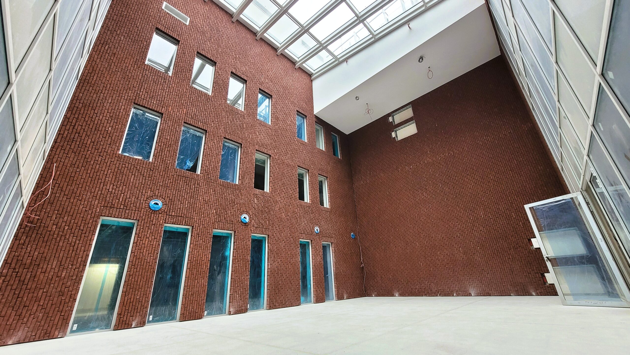 Elewacja zewnętrzna oraz wewnętrza sali organowej wraz ze stropem kolebkowym, atrium, restauracji oraz sal ćwiczeniowych z cegieł Wienerberger oraz Engels